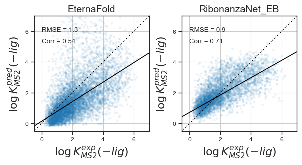 Previously, I indirectly evaluated the potential for selected probabilistic, thermodynamic, and deep learning models at predicting ligand-binding affinity through a zero-shot approach by extracting the probability of the terminal base pair in the hairpin of the MS2 protein aptamer.